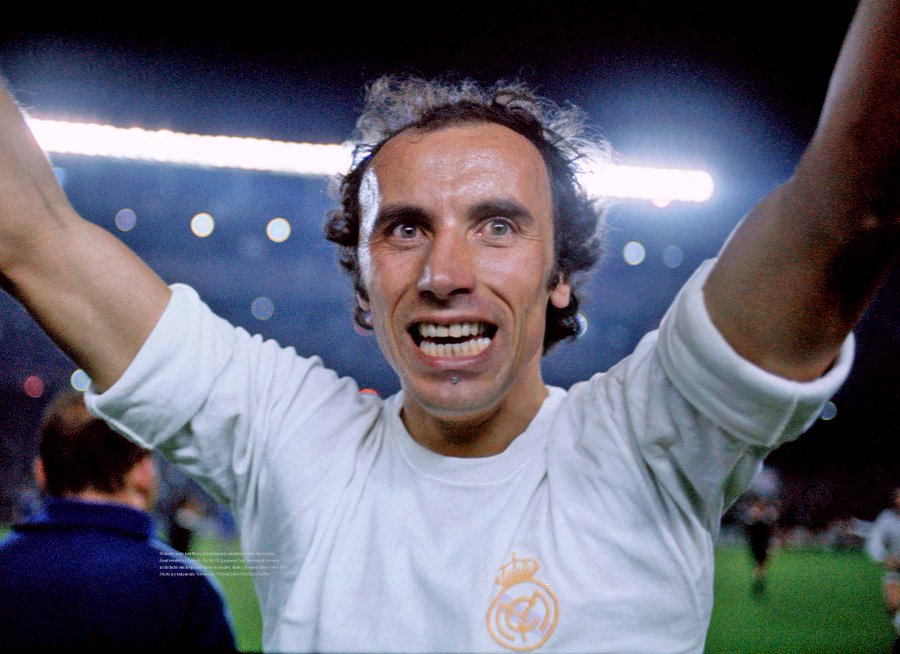 Su primer curso fue espectacular logrando 22 tantos, su mejor cifra goleadora en la liga española. Luego sus números bajaron pero concluyó su etapa madridista con 61 goles en 191 partidos oficiales. Muy recordado es un partido suyo contra el Sevilla en las semifinales de Copa en el que salió aclamado tras marcar una diana y asistir a Aguilar cuando el Real Madrid estaba con diez hombres por lesión de Sabido. También es célebre un encuentro de la ida de las semifinales Copa de Europa ante el Bayern Munich en 1976, en el que literalmente se partió la cara. En un balón aéreo saltó con Maier y un golpe con el cancerbero alemán le produjo la fractura de los huesos propios de la nariz. Acabó el partido sangrando y con varios apósitos que no terminaban por parar la hemorragia nasal. En 1980 retornó al equipo periquito para colgar allí las botas y tras conseguir una magnífica cosecha de títulos en la casa blanca: 5 Ligas y 2 Copas.