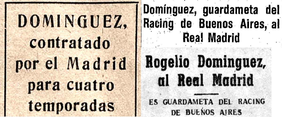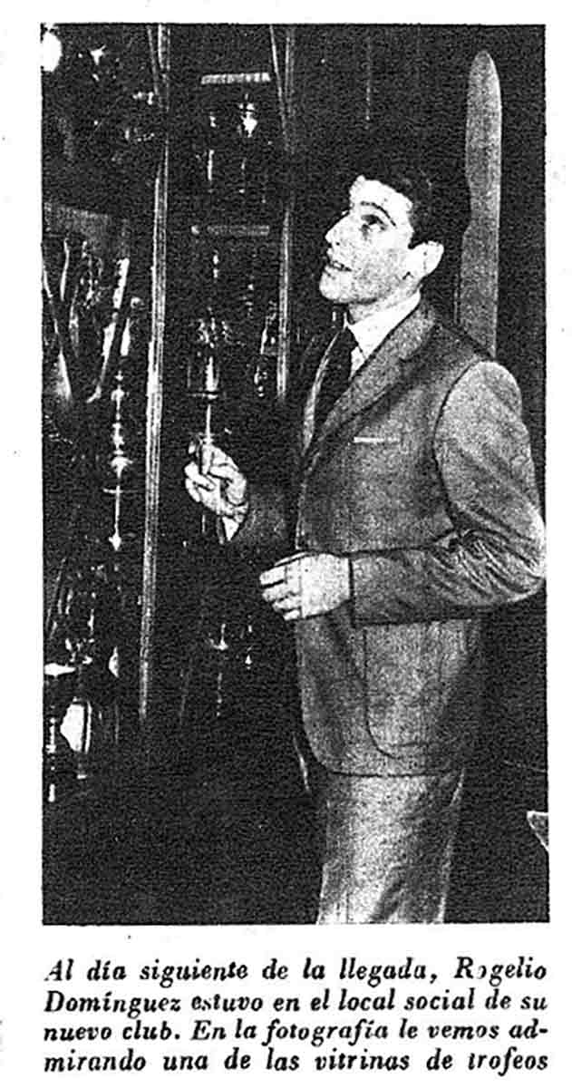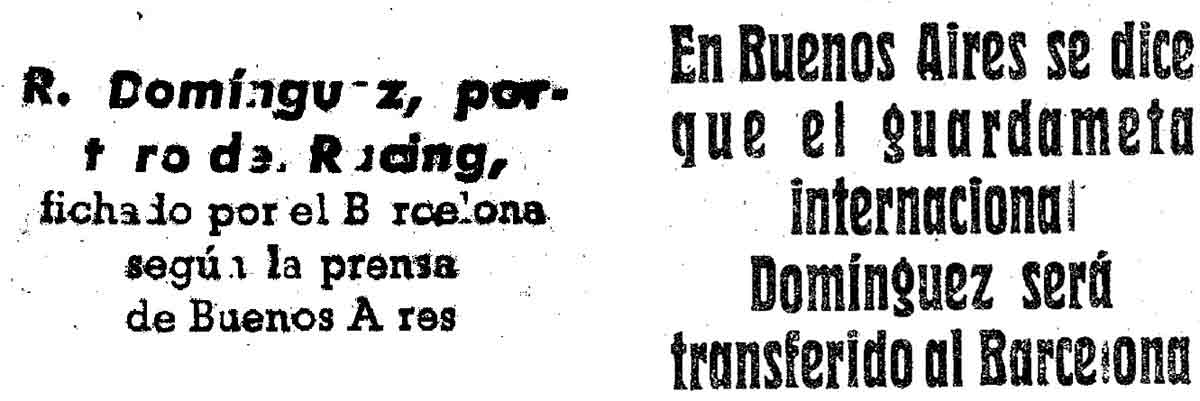 A comienzos del mes de abril de 1954 el diario MARCA se hacía eco de la prensa argentina que afirmaba que “el guardameta internacional Domínguez será transferido al Barcelona”. En el cuerpo del artículo se ampliaba la información explicando que todavía “no se ha determinado la cantidad del traspaso, pero el portero percibiría una prima de un millón trescientos mil pesos, por un contrato de tres años, además de sueldos y primas”. En Mundo Deportivo sí apuntaban a un “sueldo mensual de 20.000 pesetas” y que su club, Racing, “recibirá 1.650.000 pesos por el fichaje”. Sin embargo, apenas diez días más tarde, el medio deportivo catalán informaba de unas palabras de Luis Chamizo, presidente de Racing, que decía que Rogelio Domínguez “no será transferido a ningún equipo español”.