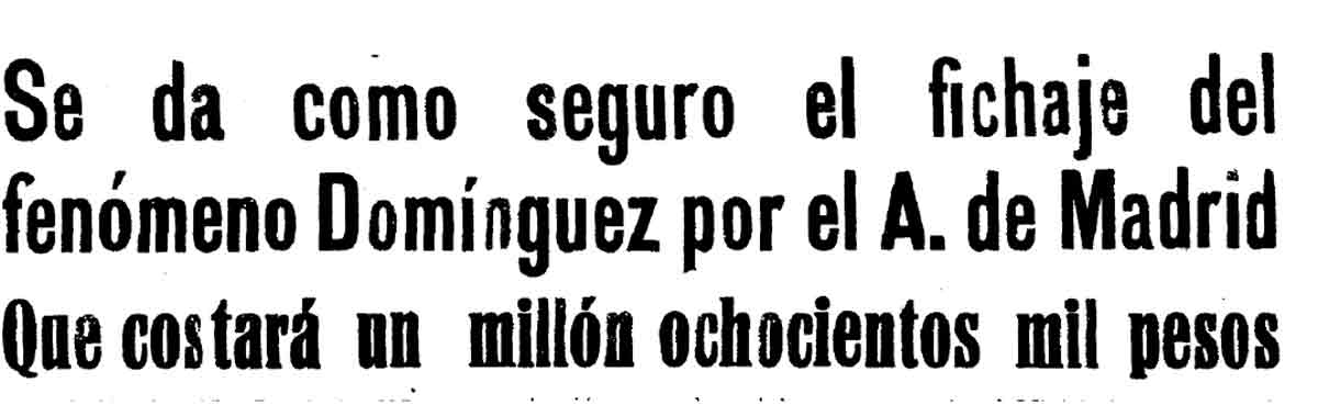 El día 24 el runrún por la confirmación del fichaje creció en Argentina y ambos clubes estaban cerca de llegar a un acuerdo. Las cantidades de las que hablaban los directivos de la entidad de Avellaneda eran de 2 millones de pesos (2.060.000 millones de pesetas) por el traspaso, mientras que Domínguez recibiría un millón y medio de pesos (1.545.000 millones de pesetas) por un contrato de dos años. Así el arquero se convertiría en el quinto jugador internacional de la albiceleste (Sívori, Lugo, Garabal y Angelillo) que iba a cruzar el Atlántico.