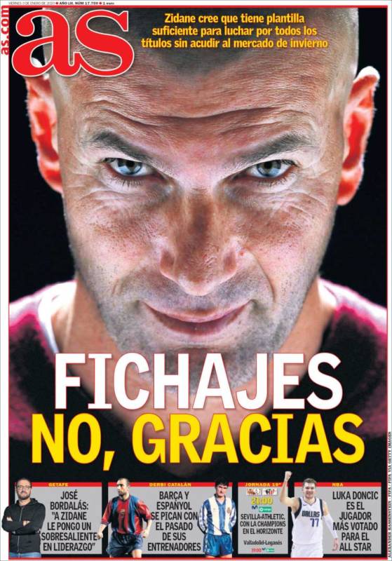 Esa es la cosa con el As, relañismo postRelaño pese al notorio afán de blanqueamiento de sus portadas y línea editorial, que parecen tender a una mayor asepsia desde que el gran hombre cedió el testigo. Sin embargo, una cosa es intentar ser menos bilioso contra el Real Madrid y su directiva y otra muy distinta que abunden tus fuentes de información en el seno del club blanco después de lustros de maltrato relañista. Como consecuencia, As sigue tan desinformado como siempre, si bien en este caso (ahora en serio) tenemos la sensación de que acierta al decir que no entrará nadie por la ventana invernal. Si acaso los Reyes Magos dentro de un par de noches, unos Melchor, Gaspar y Baltasar a los que hay que pedir, en realidad, salud y basta, salud y nada más parafraseando el Himno de la Décima. All I want for Christmas es un Hazard sano.
