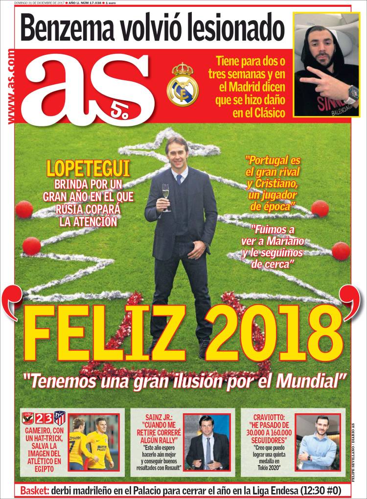 Exclusiva Sport, reza una imitación de cuño para certificar unas declaraciones de aúpa, o de agárrate y no te menees: "Lo mejor está por llegar y esperamos cumplir con todos los retos que nos hemos marcado", dice Andrés. Que paren rotativas. Si aún están ahí, dejen ustedes de pelar uvas o de intentar nudos de corbata. Háganse el favor de leer semejante exclusiva y sepan por fin de qué hablar esta Nochevieja, una noche no tan vieja como las portadas de hoy, no tan vieja como las portadas de cada fin de año, máxima expresión y quintaesencia de lo viejas que son las portadas de cada día una vez que salen a la luz y ya no importan en absoluto y nada dicen salvo el hecho mismo de que nada digan y ya ese simple hecho tal vez sea cosa mayor.