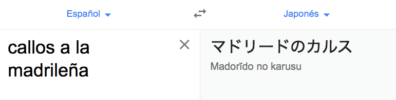 -Unos マドリードのカルス, son callos a la madrileña, tome nota, apunte, va a quedar como un señor delante del Embajador. Se lo voy a pronunciar lentamente. Madorīdo no karusu, ma-do-rī-do no ka-ru-su.