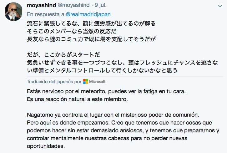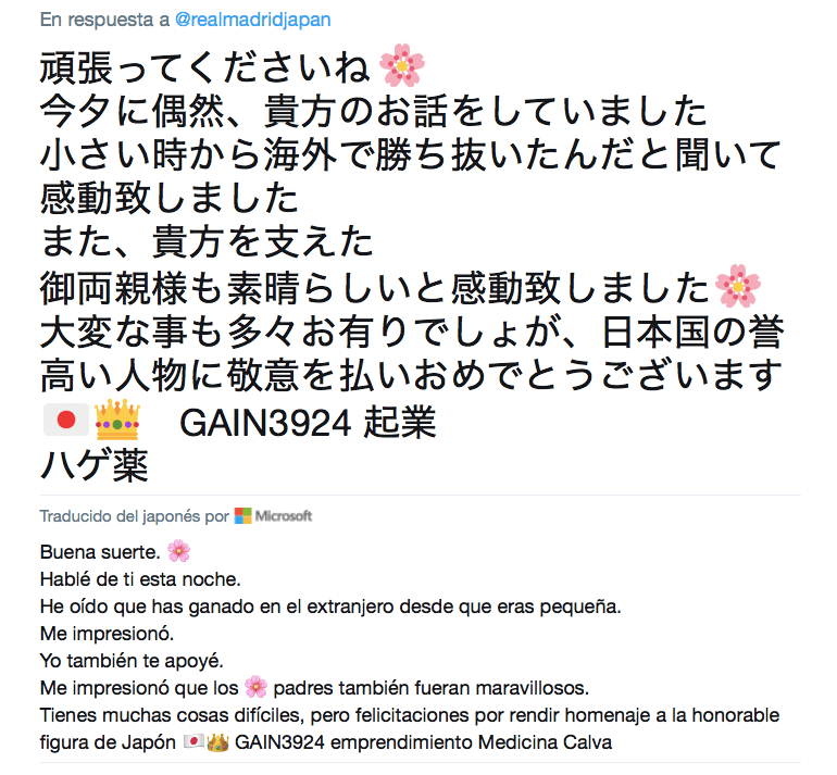 Tiene temas suficientes para dejar el pabellón del Real Madrid en lo más alto. Si necesita cualquier otra cosa no dude en consultarme. El japonés no tiene secretos para mí, ya sabe, no es por presumir, pero los Analistas internacionales somos así…