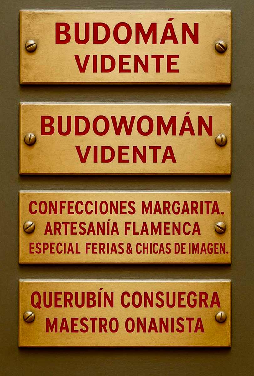 El despacho estaba en el portal número 7D bis de la calle Neptuno, en un quinto piso sin ascensor, compartiendo espacio con una academia de confección de trajes de faralaes regentada por Margarita de Barbate y su nuevo novio, un vidente senegalés que se hacía llamar Budumán o Buduwoman según el sexo de sus clientes. Pegado a la puerta de la academia, un turgente maniquí lucía un traje gris mugre, otrora blanco, con volantes de lunares rojos. Una peluca lacia, la pintura del rostro descascarada y unas manos huesudas a las que les faltaban varios dedos completaban el aspecto del figurín.