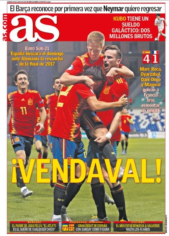 Buenos días. La selección española sub-21 está haciendo un magnífico papel en el Mundial de la categoría que se está disputando en Francia. No sabemos explicar muy bien cómo ni por qué, pero tenemos la firme intuición de que esto va a terminar, de algún modo, siendo negativo para el Real Madrid.