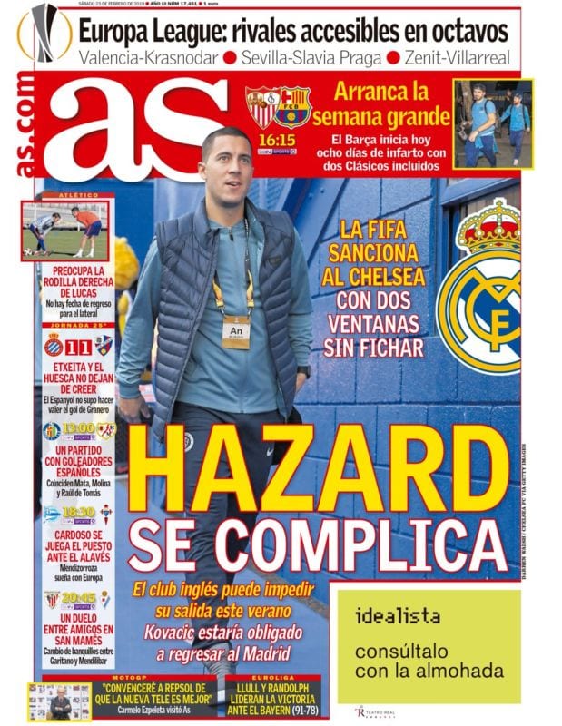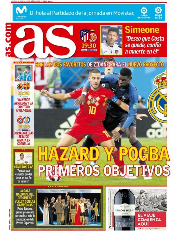 Todo empezó el 23 de febrero en 'La Ouija Today' con Hazard como protagonista. Al parecer, el belga ya estaba en la agenda del Real Madrid, pero la sanción de la FIFA al Chelsea -dos ventanas sin poder fichar- complicaría la posible operación. Mes y medio después, el mismo periódico nos contó que Hazard y Pogba eran los objetivos de Zidane. El bueno de Eden ya no era tan complicado. De hecho, se convirtió en un fichaje asequible, tal y como pudimos ver el 6 de abril en 'Marca'.