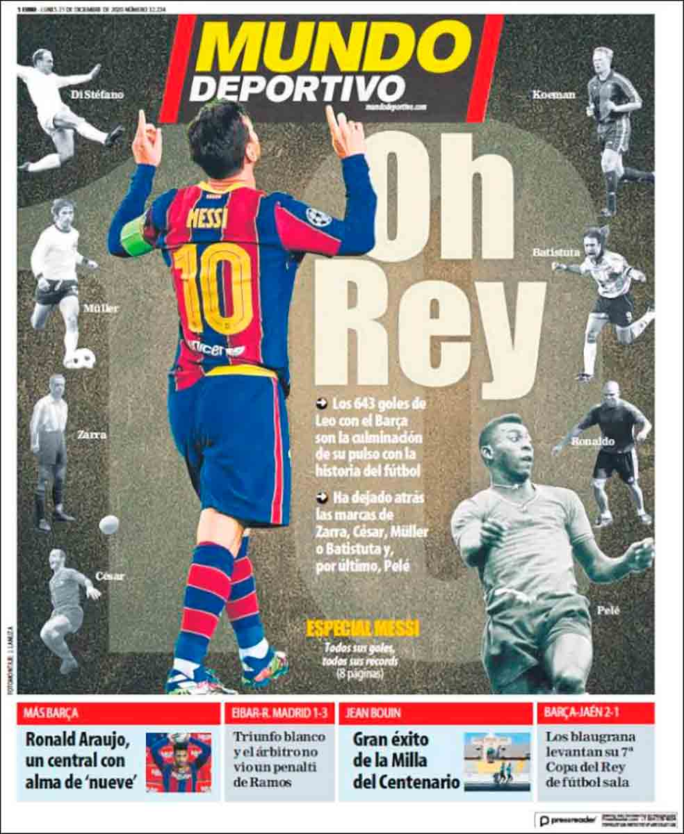 El diario del Conde de Godó sigue en su mundo (Deportivo) de fantasía y huida de la realidad nefasta del equipo y abre con Messi rodeado de grandes goleadores en blanco y negro, entre los cuales se les ha colado Koeman. Entendemos que es un grueso error.
