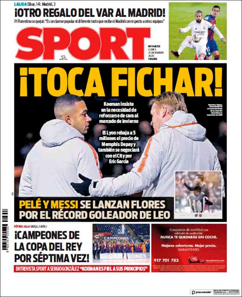 Al menos, Sport nos recuerda en letras gordas que es lunes y hay que trabajar: “¡Toca fichar!”. Es el único significado no absurdo que tiene el titular, aunque cuando leemos los subtítulos comprendemos que el Barcelona aún quiere gastar millones de euros inexistentes.