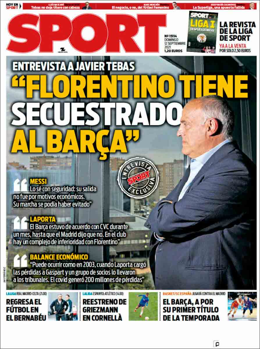 Ya saben que a Tebas le dio por decir que el Barça está “secuestrado” por Florentino Pérez, tremebunda revelación a la cual Sport dio honores de portada. Nos quedamos sin saber a cuánto ascendía el rescate. A lo mejor se podría haber hecho un crowdfunding entre los barcelonistas para que nos devolvieran, por ejemplo, el importe del fichaje de Figo, cerrándose ya el círculo de manera satisfactoria para todo el mundo.