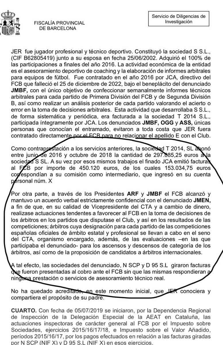 Segundo. La denuncia de la fiscalía es contundente, más de lo esperado incluso, al hablar claramente de que el interés del Barcelona era beneficiarse de arbitrajes y alterar la competición. Cuando un fiscal pone esto por escrito es que tiene indicios más que considerables.
