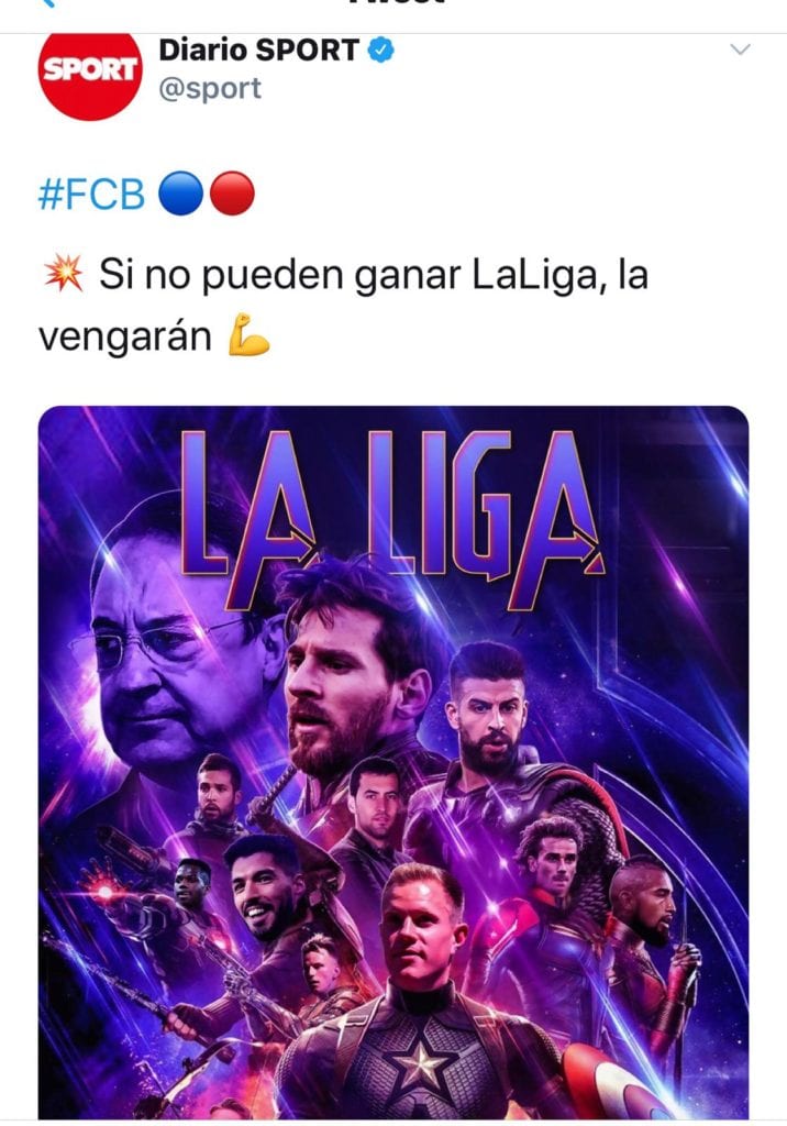 No vamos a comentar ni la leyenda que acompaña a la publicación -Si no pueden ganar la Liga, la vengarán- cuyo significado real nos ha acabado por encriptar el cerebelo, ni quién ha hecho el casting de tamaña superproducción superheroica.