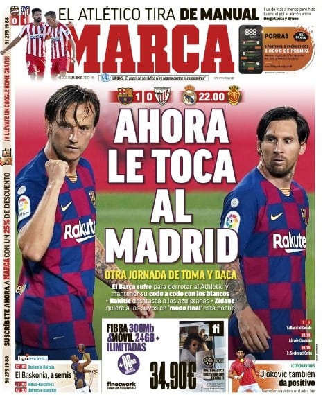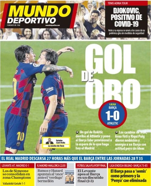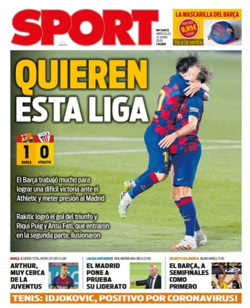 23 de junio de 2020. 19:25 horas. Tuit del diario Sport. Bilis bullente.