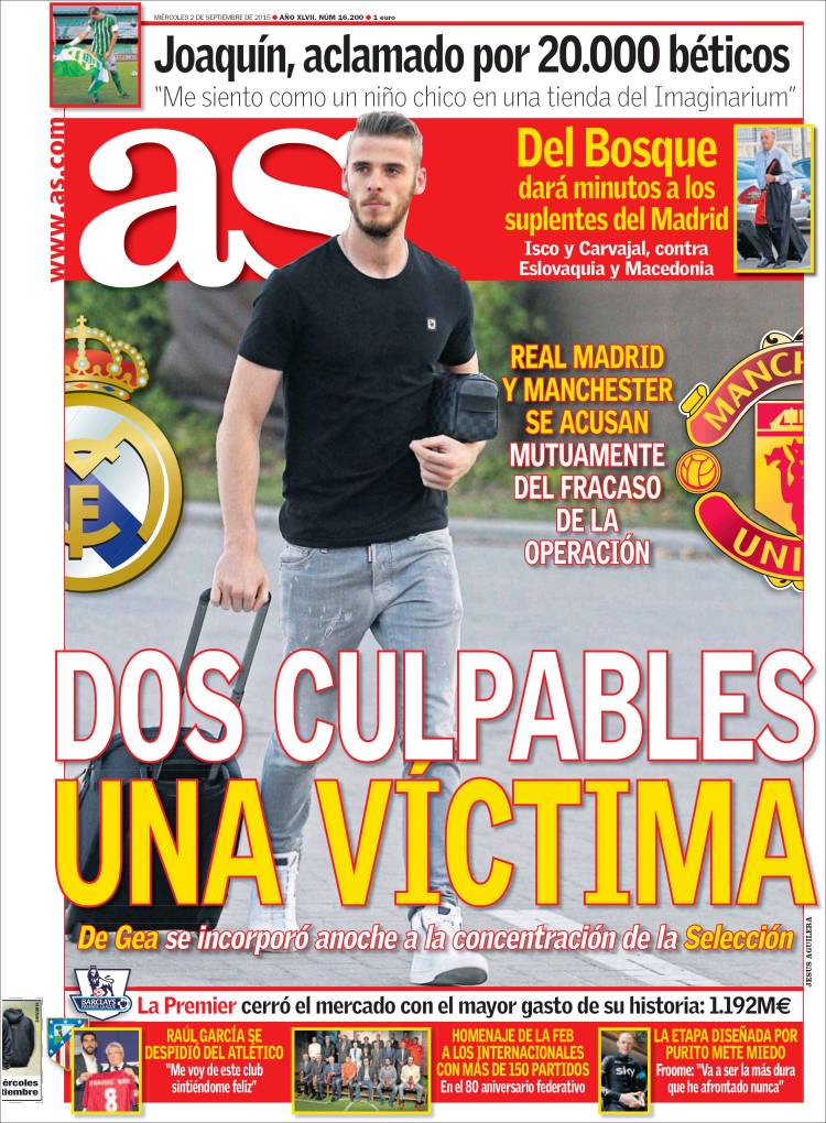 Y luego las razones de De Gea. No entra a dilucidar cuales pueden ser sus verdaderos motivos; descontento con Van Gaal o volver a Madrid por motivos personales. El tema económico no debería ser, ya que el MU le puede pagar la misma ficha que el RM. Y su madridismo està demostrado que no, tras toda una vida en el ATM, en 2011 dijo bien alto "que no iría al RM ni por un cheque en blanco.