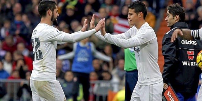 A Benzema, cuando quiere señalársele su falta de gol, se le dice: es un delantero con corazón de mediapunta. James e Isco, Isco y James, sufren las indefiniciones propias de su naturaleza humanista, en un fútbol que necesita precisarle al espectador el rol de cada uno de sus protagonistas: ni son propiamente interiores, aunque puedan jugar ahí, ni son centrocampistas puros. Ni alas, ni volantes. Ni segundos delanteros, ni falsos puntas: son trescuartistas, fantasistas en la nomenclatura italiana. No tienen cuerpo de defensor; no se fajan como el box-to-box. No tienen ni la constancia que necesita un 5 para controlar todo el partido con la cabeza, ni los pulmones del interior, que ha de hacer la cobertura a los laterales y acompañar el ataque siguiendo a la manada. Pueden hacerlo, quizá hasta duren una temporada. ¡Incluso Sneijder lideró un triplete!