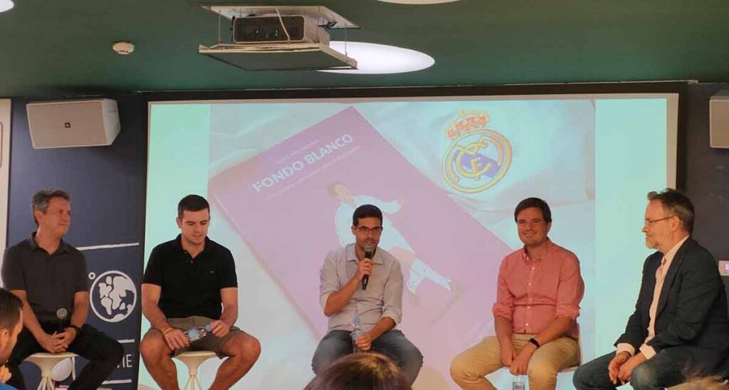 Anoche estuve en la presentación del libro Fondo blanco, de mi amigo y colaborador de La Galerna Juan Carlos Guerrero. Durante el evento se suscitó una charla muy interesante que condujo con mano maestra el propio Juan Carlos, que lo mismo te encandila con la eficiencia de su sintaxis que te convoca un aquelarre vikingo con Juanma Trueba, Iñaki Angulo, Ramón (es uno de los escasos españoles que ya no necesitan apellido, como Felipe en los ochenta) y el que humildemente suscribe. Al hilo del libro, que debéis comprar en este enlace y leer con inevitable avidez, JC nos guio a lo largo de una serie de temas a cual más apasionante, todos relacionados con nuestro madridismo, con un apartado final sobre el futuro del periodismo deportivo, valga el doble oxímoron.