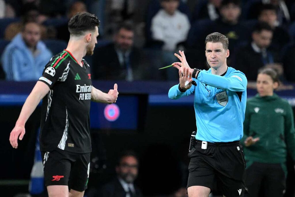 Por lo demás, sacó varias tarjetas. Todas justas. Una Alaba por entrada a Saka, otra a Asencio por el penalti y una a Raya por perder tiempo. Además, anuló la de Rice por el penalti suprimido. Por último, en el 2' Mbappé marcó en claro fuera de juego señalado por el línea.