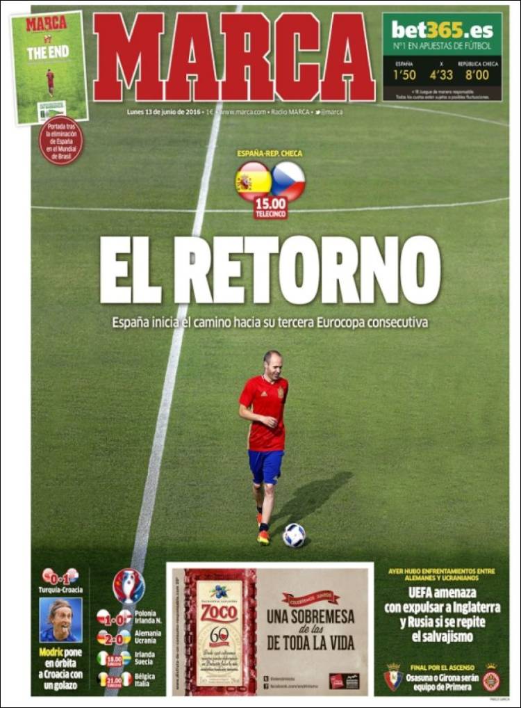 Por otro lado, y ya en el terreno de lo deportivo, hoy vuelve España a la Eurocopa. Marca recoge el asunto de una manera innegablemente brillante.