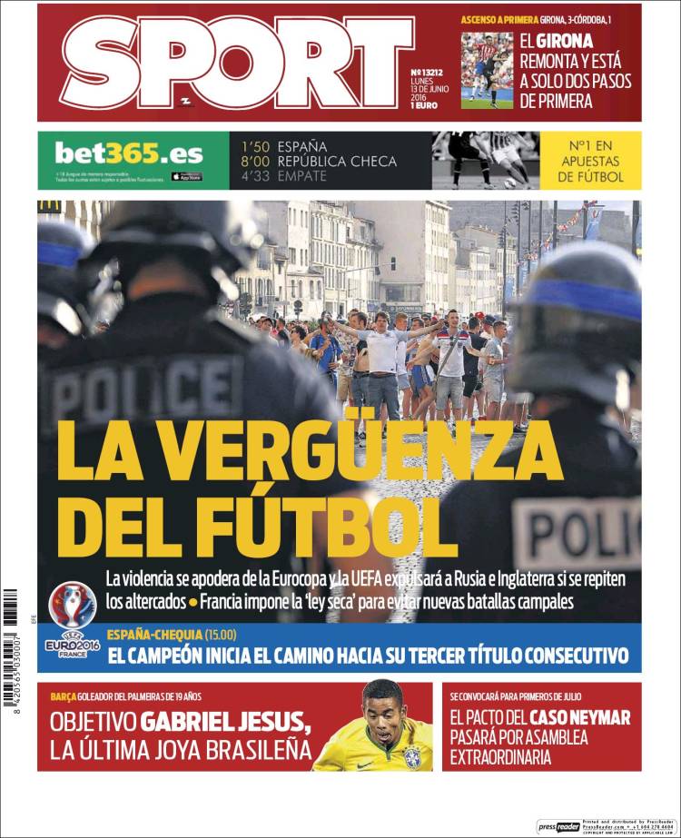 Hola, galernautas. ¿Qué mueve a un periódico deportivo a posicionarse rotundamente contra la violencia en el fútbol habiendo sido, paradójicamente, el único en su especie que no trajo a portada el atentado yihadista contra una peña madridista en Irak? Un diario deportivo desdeña llevar a su primera plana los goles de la Eurocopa ya en marcha para denunciar en cambio la presencia en dicha competición de grupos de seguidores violentos. Bien hecho. Muy plausible. Pero resulta que apenas un mes antes no fue capaz de dar prioridad en dicha portada a la matanza de una serie de aficionados del Madrid en Irak, matanza a la que el resto de diarios deportivos -y hasta los no deportivos- otorgaron la preponderancia informativa requerida. ¿Por qué salir a cinco columnas contra el hooliganismo pero no hacerlo contra el yihadismo? ¿Será por ventura porque las víctimas del yihadismo en aquella nefasta ocasión eran seguidores del equipo más odiado por la redacción del diario en cuestión? ¿Existe alguna otra explicación para esta escandalosa doble vara de medir la incidencia de lo extradeportivo en el deporte?