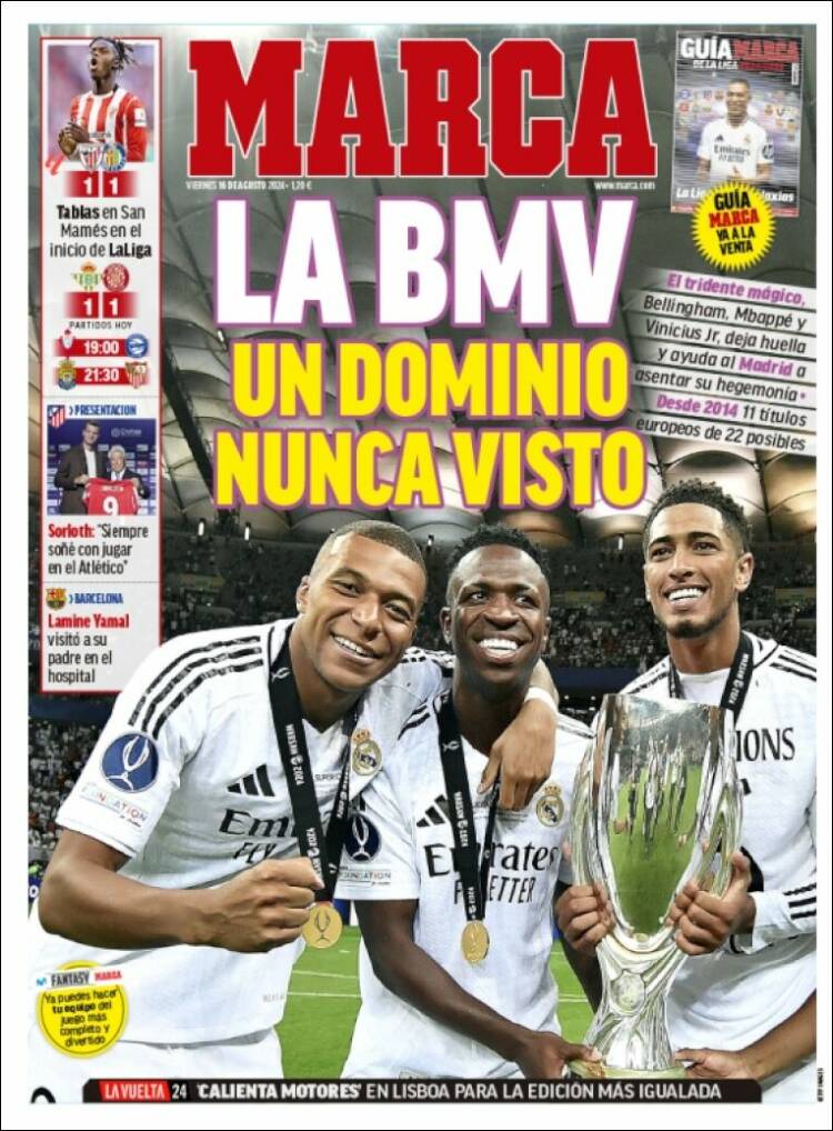 Fíjense en su primera plana post Supercopa de Europa: “De los productores de BBC y los guionistas de MSN llega BMV”… Y ellos tan contentos. Ahora deténgase en la fotografía original tomada sobre el verde de Varsovia. La magia del recorte.