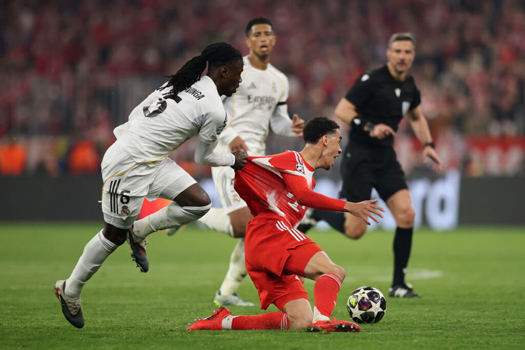 Mendy, a pesar de jugar muy bien, tampoco hizo ninguna cosa descomunal: Olise hizo un tiro que se fue lamiendo la escuadra, hizo otro tiro con intervención buena de Lunin, y terminó metiendo un gol. El Bayern no supo atacar al Madrid, porque fue incapaz de doblar por fuera, por banda, y doblaba por dentro. Laimer y Stanisic no atacaban bien la defensa, y el Bayern perdía fuelle en los ataques por atacar deficientemente. Ni tan siquiera Davies lo hizo al entrar.