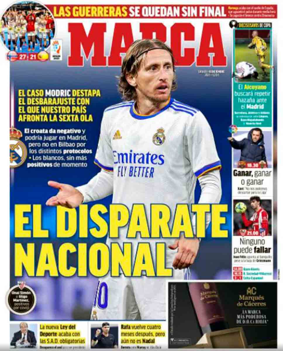 Marca titula "El disparate nacional", y titula bien si atendemos a lo que nos indica respecto a que Modric podría jugar mañana en el Bernabéu, pero no el miércoles en San Mamés. Es una cuestión que depende de los distintos protocolos, ya no sabemos si de las comunidades autónomas o de los que parece que redacta el propio Tebas en un post-it y con el palillo en la boca, como cualquier hijo de vecino mientras hace la lista de la compra. Pero no osemos criticar al presidente de LaLiga, y menos en la portada de un medio deportivo independiente de los ingresos por publicidad que provienen de la propia Liga. Porque todos sabemos que LaLiga es una competición seria y perfectamente organizada con protocolos rigurosos desde el primer día, un ejemplo de pulcritud en el que jamás se sospecharía de trato de favor o castigo entre unos equipos y otros, ya sea con los calendarios, las designaciones arbitrales o las declaraciones del presidente. Si no fuera una competición tan profesional, no se tolerarían imágenes de balones deformados para decidir sobre fueras de juego, ni se mandarían taxis en plena Filomena a recoger a los jugadores en sus casas, ni mucho menos se permitiría que un equipo llegara tarde a un partido. Por supuesto que no se miraría hacia otro lado con las cuentas de algunos clubes porque para eso hay unas estrictas normas de control, como tampoco se permitiría que fueran los clubes los que reportaran sus propios casos de Covid, no vaya a ser que algunos oculten la realidad y se mantengan en una burbuja perfecta de inmunidad que para nuestras familias quisiéramos. Afortunadamente, nada de eso ocurre aquí. El disparate lo crean otros. ¿Quién? No lo sabemos, pero “otros”.