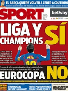 De hecho Sport, que fue quien hizo saltar la liebre por la Ampurdá, escurre el bulto al tiempo que ilustra su portada a todo color con unos sonoros "Liga y Champions, sí; Eurocopa, no". Lo que no sabemos muy bien es que pinta Messi por ahí cuando todavía andan investigando su desaparición en Roma, Liverpool y Chamartín.