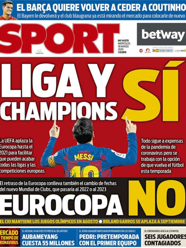 Una máxima que llueve como café en el campo de unas portadas de la prensa deportiva, que andan de información tan resecas y arrugás, como un billete de mil pelas perdido en el bolsillo trasero de tus vaqueros adolescentes. Y es que hablar de deporte sin deporte, con este virus que todo lo copa, es complicado incluso para nuestros cuatro jinetes del apocalipsis deportivo diario desde las primeras planas.