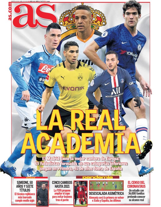 As felicita a Simeone después de recordarnos que la cantera del Madrid es la mejor del mundo. Nos lo recuerda porque ya lo sabíamos, no porque nos lo hubiera dicho antes. Es gratificante este reconocimiento por parte de un periódico que, desde la salida de Relaño, ha ido atemperando su belicosidad contra el club. Reconocer que la cantera del Madrid es la mejor supone una obviedad. El hecho de que el porcentaje de canteranos que se asienta en el primer equipo sea bajo, porque lo es, no tapa el hecho de que nadie fabrica tantos jugadores para la élite como Valdebebas. Algunos elegidos triunfan en el club. Otros recalan en otros clubes y constituyen una fuente de ingresos que contribuyen a fichar otros grandes jugadores para el Madrid. 83 futbolistas de la cantera blanca juegan en Primera División, 41 de ellos fuera de España. Enorgulleceos, madridistas.