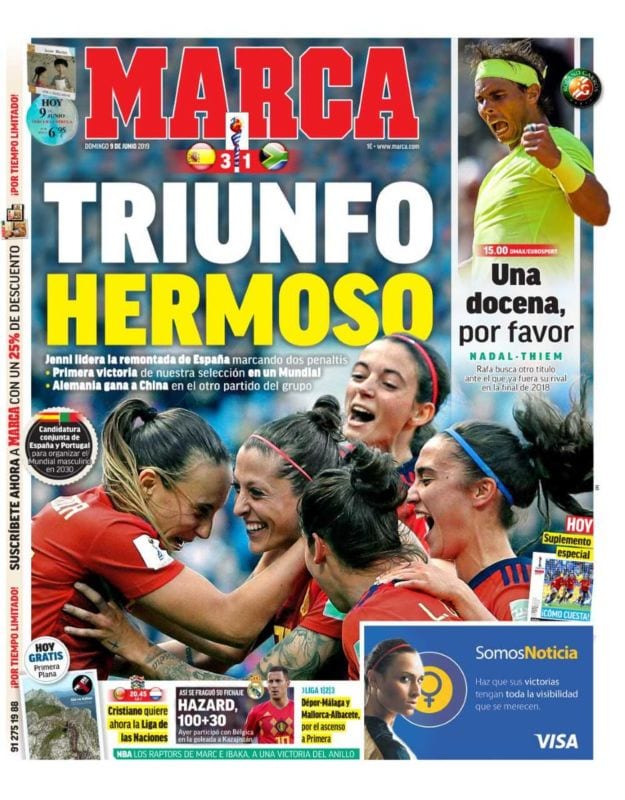 Dentro de un tiempo, si todo va bien, podrán verse representantes del Real Madrid en fotos del equipo nacional, como la que trae a su primera plana el Marca de hoy. Como no tiene que ver con el Real Madrid, y sí con la selección, está portada en cambio va a gustar a todo el mundo.