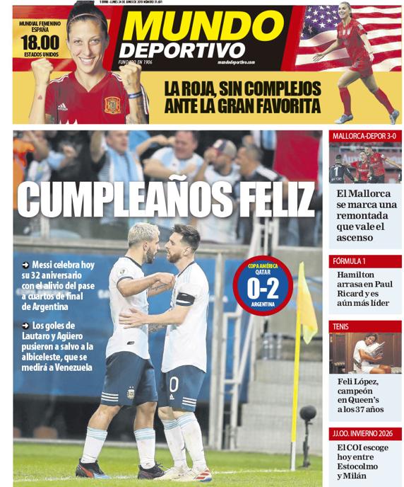 La prensa restante viene llena de detalles asombrosos, no nos podemos quejar, y se diría que el IMSERSO del fútbol hubiera promocionado parte de ellos. Torres se retira, lo que nos conduce a la absoluta revelación de que en realidad no lo había hecho aún; Dani Alves se ofrece al Barça (¿y por qué no el Chapi Ferrer, puestos a entrar en muy legítimas nostalgias?) al tiempo que Neymar va a pedir perdón como lo haría el Dúo Dinámico, quizás formando dicho dúo con el padre; y Mundo Deportivo felicita el cumpleaños a Messi que, no nos engañemos, también va cumpliendo algún que otro abril, situándose cada día que pasa un poco más cerca de ganar el Mundial de fútbol que tanto anhela para sacudirse de una vez por todas la sombra de Maradona.
