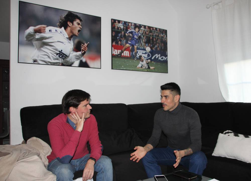 Pensábamos que nos iba a recibir Álvaro Benito, pero en realidad fue Blitis, un tipo estupendo que más tarde me dio un abrazo imprevisto por la espalda. Dicen que los perros se parecen a sus dueños, y, aunque no nos gusten los lugares comunes, hay que decir que aquí al menos se da la casualidad. El Álvaro que vimos jugar en el Bernabéu, que vemos ahora en la televisión o escuchamos en la radio, es el mismo Álvaro sencillo que nos atendió en su casa. Álvaro ya no cumple los treinta, pero parece el mismo joven que cantaba la canción de cabecera de Los hombres de Paco. El joven que es capaz de mantener una compostura admirable de la que siempre parece intentar salírsele un niño que quiere reír. El niño que iba para estrella del Madrid y no pudo ser. Aunque esto, desde luego, aún está por ver. A efectos de contextualizar, matizaremos que la entrevista tiene lugar antes del gran estallido del coronavirus.