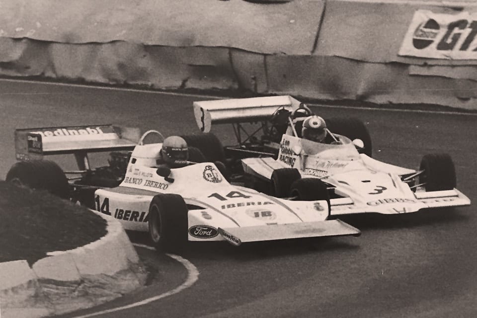 Me puse a estudiar Económicas en la Complutense y la verdad es que tardé en sacarme la carrera, ya que dedicaba todo mi tiempo al motor. Empecé a competir primero de copiloto de rallyes con un “600”, y luego en la célebre Copa Renault 8 TS en los primeros años 70. Luego competí en la Fórmula 1430 y en la 1800, con bastantes buenos resultados. Al poco tiempo acabé la carrera y empecé a trabajar en el Banco Ibérico como director de sucursal. Me iban bastante bien las cosas profesionales. Un buen día, en una reunión de directores de sucursales, el director del Banco Ibérico me preguntó por mi afición a las carreras. Pensaba que me iba a echar una bronca por mi hobby, pero el caso es que su intención era patrocinarme, junto a mis amigos y mecenas de Rodamientos Medinabi, en mi carrera como piloto. Finalmente pude debutar en F1 en 1976 y acabar varias carreras en 1977, ya con el patrocinio añadido de mi banco y el de Iberia, entre ellas el GP de España en el circuito del Jarama.