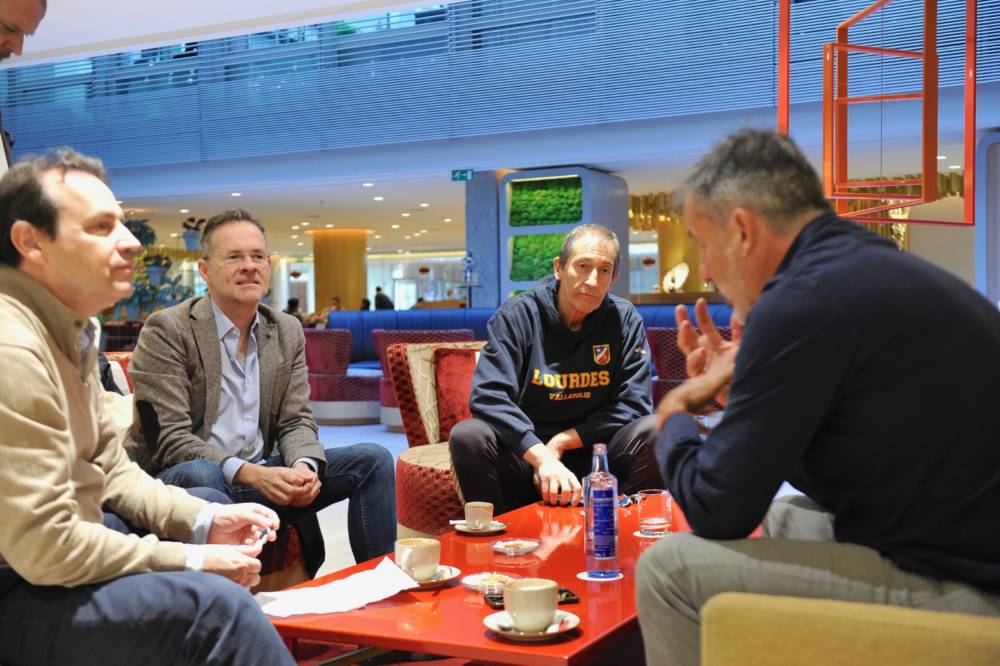 Aun así me ayudaban. Empezamos a tener también bastante relación, sobre todo con Emilio Butragueño. Con Emilio siempre hemos mantenido muy buena dinámica y cualquier cosa que he necesitado y le he pedido siempre ha estado disponible. A través de Emilio, y después con Cayetano de Alba, y después entran Carlos Sainz, Raúl Chapado, Joe Llorente (aquí presente), etc. se van gestando asociaciones de deportistas que antes no teníamos. Pero claro, los de fútbol, los de básquet, los de atletismo ya tenían su propia asociación de atletas de tal o de cual. Llegamos a hacer una asociación de deportistas que incluía a las asociaciones de deportistas, y le dimos un empujón bastante fuerte. Entre todos revolucionamos el asosiacionismo. En aquel momento se estaban negociando cosas muy importantes: la Ley del Deporte, la ley del dopaje, etc., y a mí me eligieron presidente y yo tuve la suerte de estar representando a los deportistas hasta que me fui en 2012. Fue un proyecto que Emilio Butragueño empujó de manera decisiva. Emilio siempre ha albergado esta inquietud para el bien de la gente. Los deportistas necesitábamos representación en ese momento de tanto cambio.