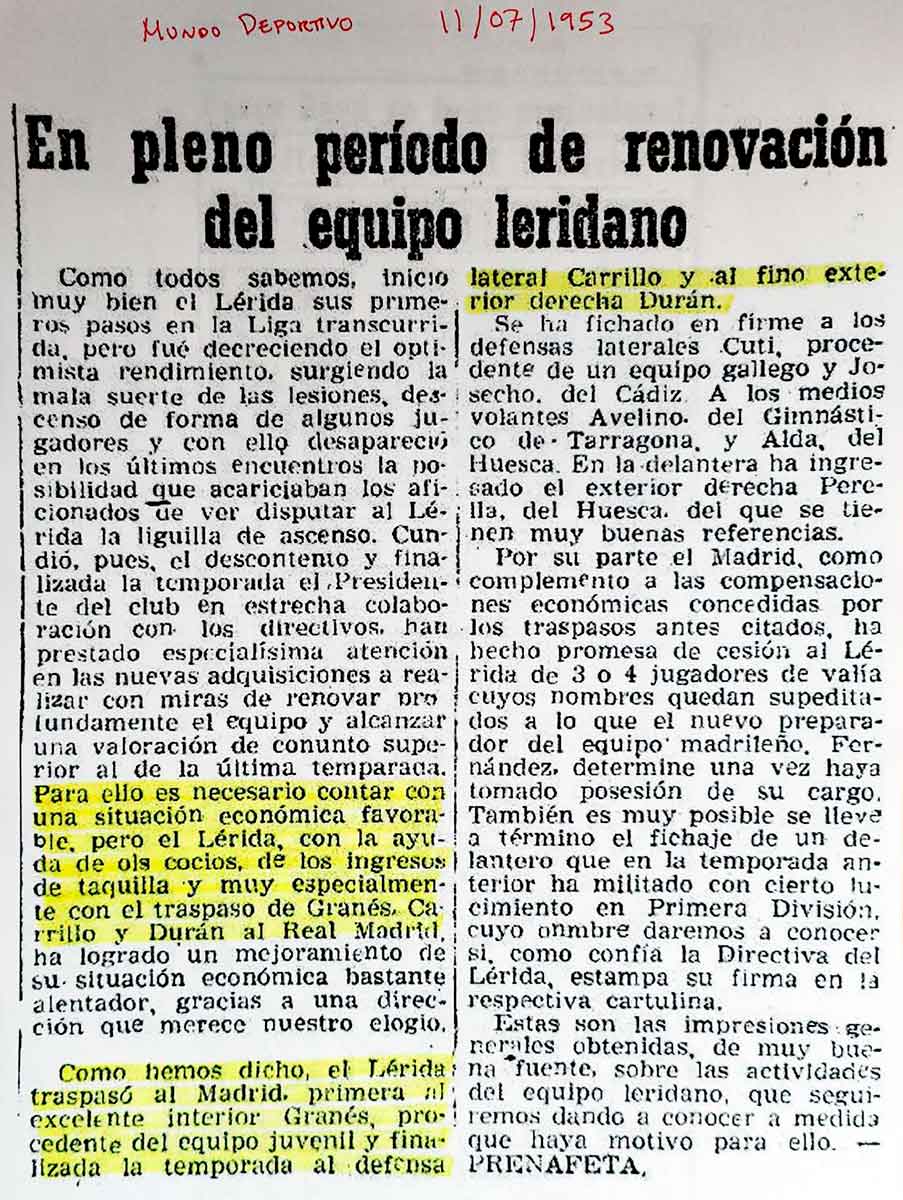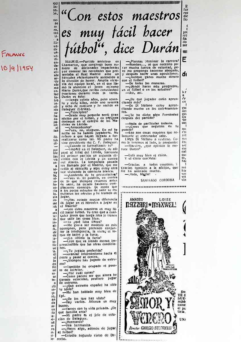 3. Yo coincidí con Mario Durán en el colegio de los HH.Maristas de Lleida. Él finalizaba el Bachillerato y me llevaba 5 cursos de ventaja. Los domingos le veía jugar con el Lleida. Y fichó por el Madrid. Lo recuerdo con simpatía y mucha nostalgia.