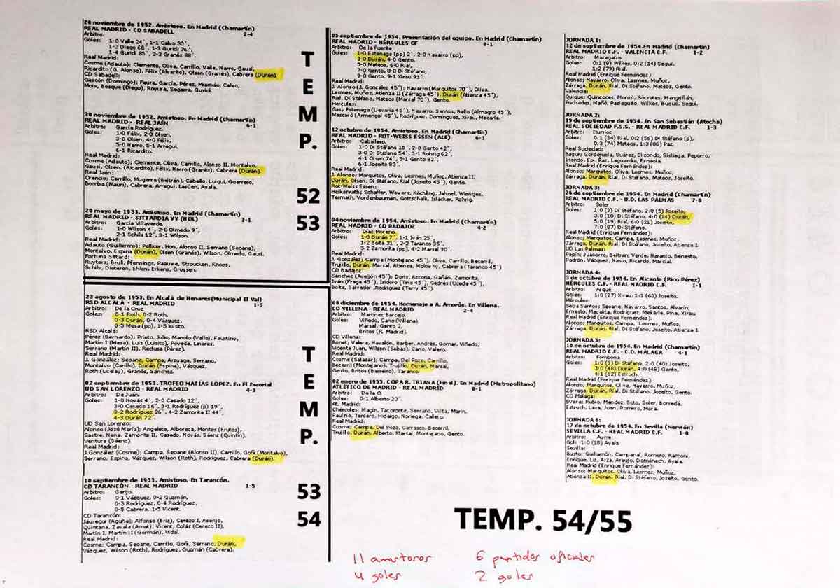 Increíble. A su vuelta al Madrid, al comienzo de la 54/55, compartiendo usted vestuario con monstruos como Di Stéfano, Molowny, Muñoz o Gento, encadena seis titularidades seguidas, con dos goles además, uno a Las Palmas y otro al Málaga.