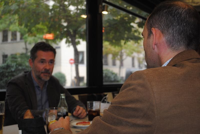 Javier Artero es materia para varias entrevistas. Se conjugan en este madrileño de cuarenta y un años el análisis futbolístico (es comentarista de Real Madrid TV, y ya se ha estrenado en La Galerna, donde como editor espero tenga una continuidad) con una peripecia deportiva y humana emocionante y alentadora. Tras su paso por el Castilla, inicia una carrera que a lo largo de los noventa y primeros dos mil encierra hitos sorprendentes, como ser el primer español en treinta años que cruza el charco para jugar en Argentina (recorriendo el trayecto inverso a tantos y tantos sudamericanos jugando en territorio nacional), o convertirse en el héroe local histórico del Dundee escocés antes de que la esclerosis múltiple que padece ("pero que me trata bien", dice conmovedoramente) le obligara a dejar el fútbol. Sobre su enfermedad, su vida y su forma de entender su amado Real Madrid charlamos reunidos en el restaurante La Estancia Chic, en pleno barrio de Salamanca madrileño. Se nos olvidaba: al frente junto a su hermano de la compañía Salesland, Javier es ahora un hombre de negocios de éxito.