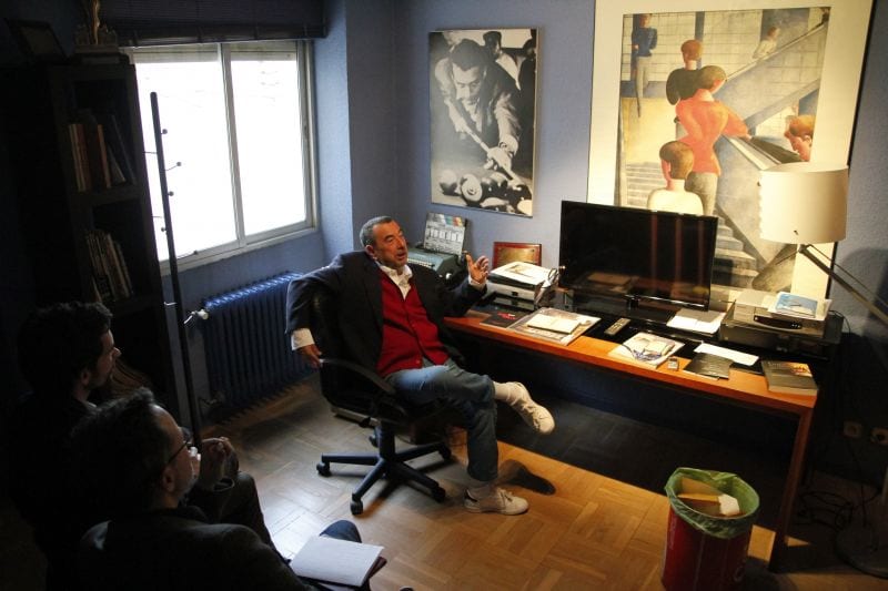 Nos personamos en la sede de la mítica productora de José Luis Garci, Nickel Odeon, para convencerle de que en realidad él es madridista. Quienes ya nos conocen saben que en esta publicación solemos llamar madridismo a todo aquello que nos gusta, y es por ello que al personarnos nos personamos ciento y la madre, no solo porque de este modo se incrementará nuestra capacidad persuasiva sino también porque es mucho lo que a Garci se le quiere en la Galerna. Nadie quería perdérselo. Le hacemos saber, nada más entrar por la puerta, que se trata del primer insigne no-madridista al que entrevistamos aquí, lo que da cuenta de cuán insigne nos resulta. No está el Óscar en ninguna repisa de su despacho, pero sí están en cambio Paul Newman y un póster de Tiovivo, mi predilecta de entre sus películas. Garci ha dicho siempre beber los vientos por el Atleti y el Spórting de Gijón. La entrevista tiene lugar pocos días antes de la muerte de Quini, que sin duda le habrá afectado. Un abrazo, José Luis, extensivo a la familia del Brujo.