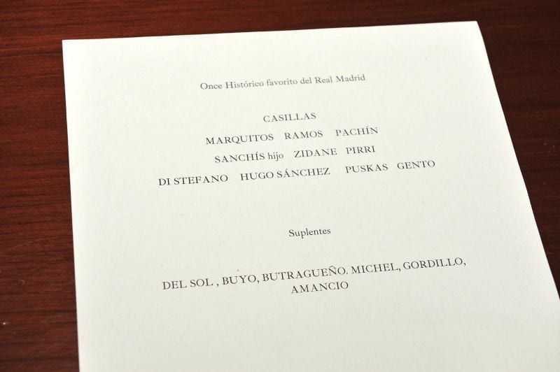 La entrevista tiene lugar varios días antes de la detención de siete altos dirigentes de la FIFA, organización sobre cuya honestidad está D. Joaquín a punto de desvelarnos sus dudas. Más visionarias aún resultarán sus opiniones sobre determinados arbitrajes internacionales, sobre los que se producirán noticias en el transcurso de pocos días. Nos recibe en su despacho y adopta el papel que sospechamos más le gusta fingir (el de cascarrabias) para quejarse porque no le hayamos avisado de las fotos. Ha hecho sus deberes, sometiéndose al ingente reto de elaborar un once histórico del Madrid: el mismo que, salvo error o negativa en firme, nos brindan y brindarán todos nuestros entrevistados en la sección.