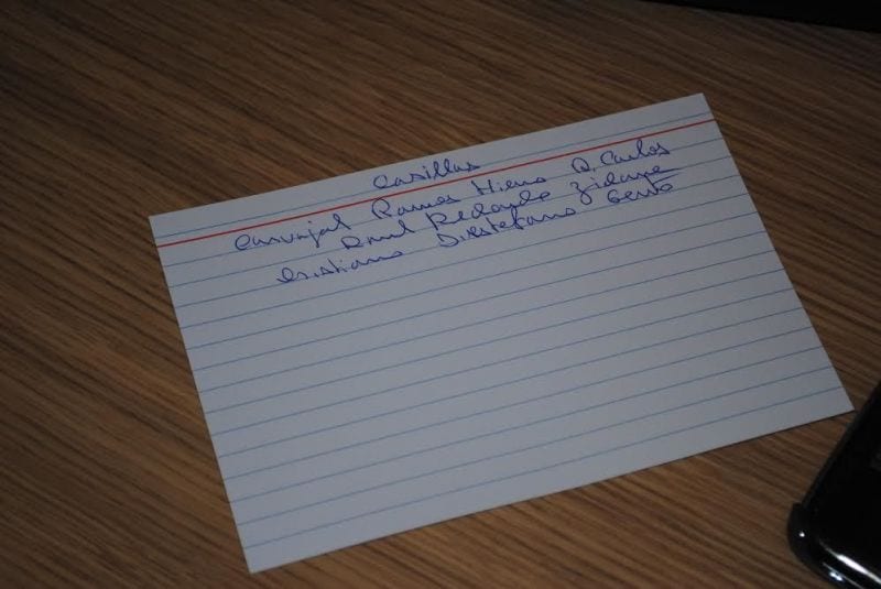 P: Bueno, procedamos ya con el asalto habitual a nuestros entrevistados. Ponga por favor en esta cuartilla su once histórico favorito del Real Madrid.