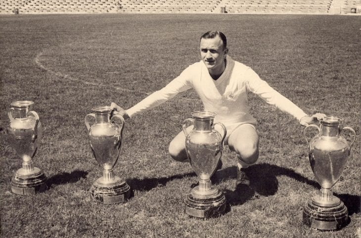 R: No. No me atrevo. Eso es muy difícil. Pero quiero decir, por ejemplo, que nosotros tuvimos al gran Paco Gento en todas las épocas, la de los cincuenta y la ye-ye. Ahí podría yo atreverme a decir que ha habido extremos izquierdos muy buenos pero la condición de Paco Gento era única. Paco Gento corría a una velocidad endiablada, se paraba medio metro y reiniciaba la carrera, con lo cual destrozaba al defensa que le marcaba… Y Paco como ha sido siempre muy prudente, muy callado, no ha estado en la ola de la popularidad, ¿no? Ahora sí, claro, y el otro día me decía: ¡A estas alturas!, como diciendo ya… Pero la realidad es que tiene una satisfacción grande, ¿no? Es querido, respetado, y es el que más Copas de Europa ha ganado porque están las Copas de Europa y luego las Champions, que no tiene nada que ver una con otra. Las Copas de Europa las jugabas y quedabas eliminado el primer partido que jugabas si perdías, ahora hay una liguilla de clasificación y después empieza la segunda etapa. No son iguales, no amerita igual pero bueno.