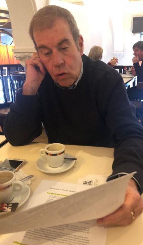 Dos madridistas catalanes (Pepe Kollins y José Luis Pizarro) quedamos en un céntrico café de Barcelona con un catalán seguidor del Espanyol: Tomás Guasch. Un encuentro representativo, en el plano futbolístico, de eso que algunos han bautizado como la “Cataluña silenciosa” aunque, atendiendo a las palabras del veterano periodista, bien podría denominarse también la “Cataluña silenciada”. Nada difiere del Tomás Guasch presencial al que conocemos por los medios. Su célebre efusividad, que te obliga a una reincidencia de la exclamación al transcribir la grabación, se percibe honesta y consecuencia de la pasión con la que vive. Del mismo modo, su gracia emerge espontánea y coherente con quien, ante todo, rechaza el conflicto y los conflictivos: “Aquí hemos venido a pasarlo bien”, se le escapa en más de una ocasión. Y a buen seguro que, en esta, lo conseguimos.