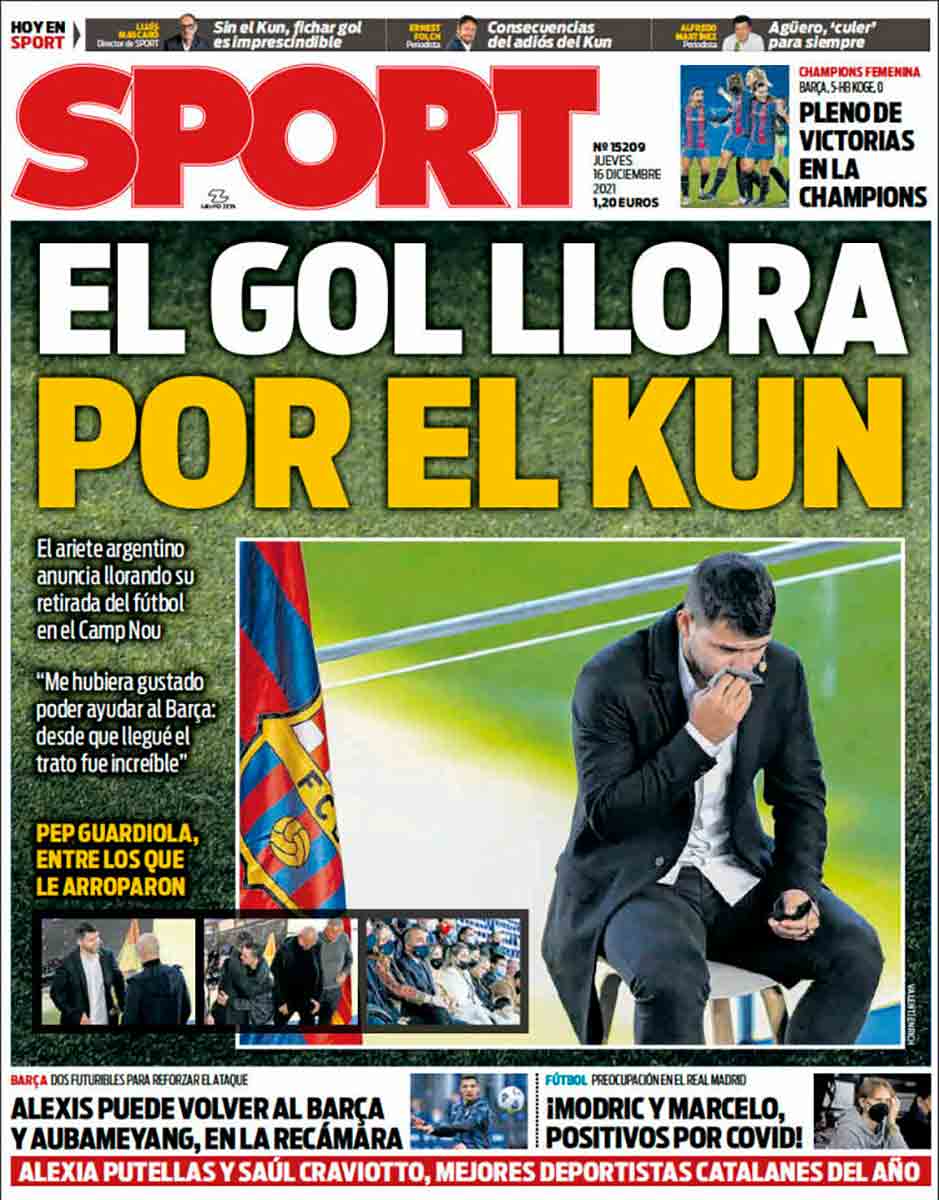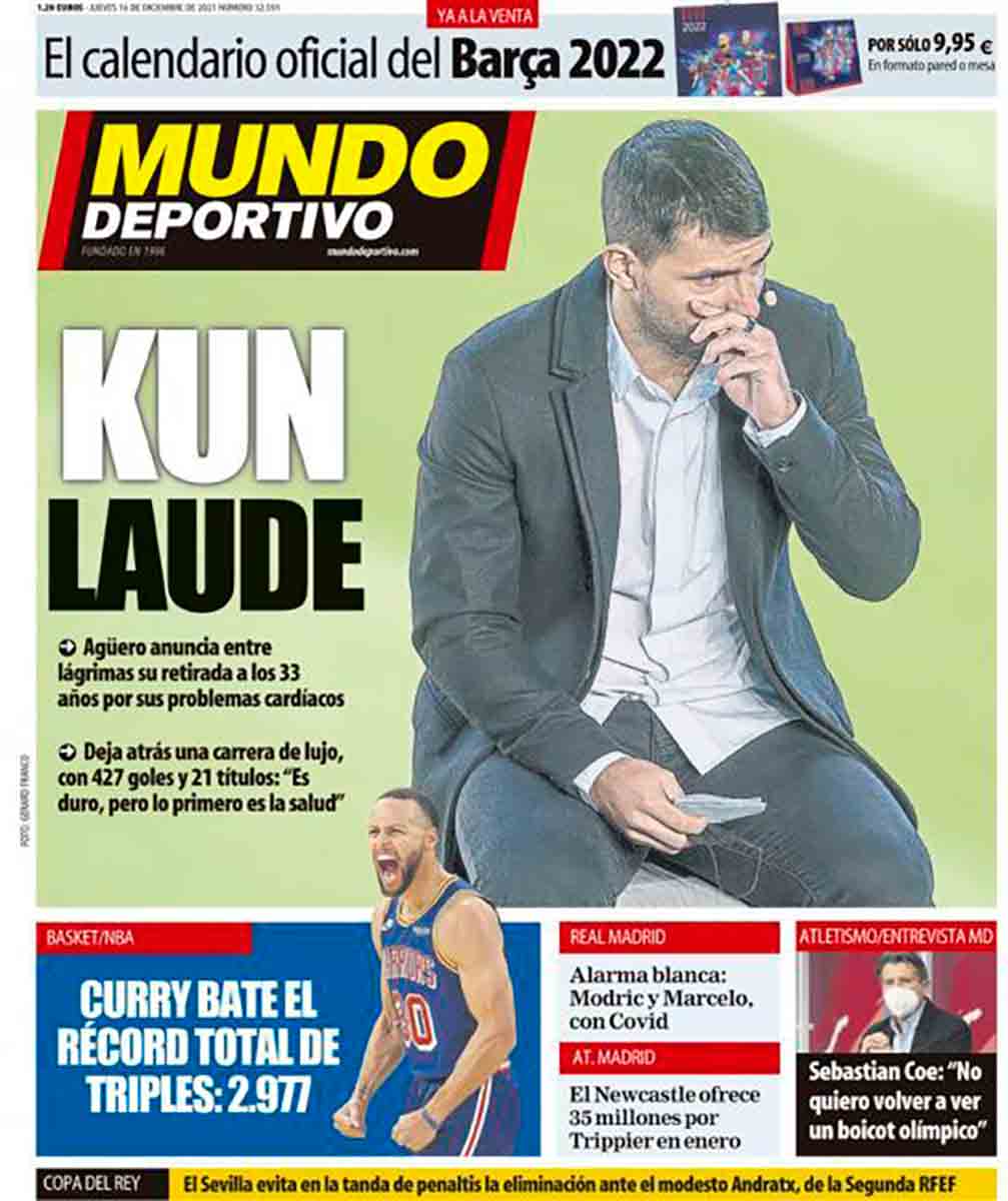 Los dos diarios deportivos de Barcelona dedican sus primeras planas a la retirada del fútbol del Kun Agüero por problemas cardíacos. La más brillante de ambas es la del diario de Godó, grande de España, que titula “Kun Laude”. Sin duda, la decisión del jugador argentino es la acertada, con independencia de que ya se hallaba en las postrimerías de su carrera. Desde La Galerna le deseamos lo mejor a partir de ahora.