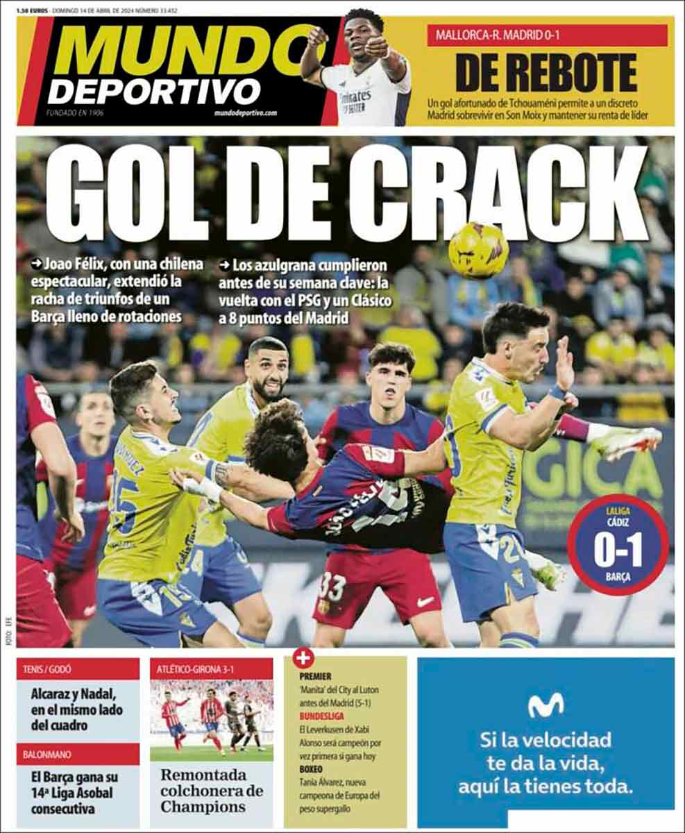 En Mundo Deportivo están también a punto de lanzarse a Canaletas, sobre todo porque el gol del Madrid en su partido fue "de rebote", en alusión al ligerísimo roce al que aludíamos en el chut de Tchouaméni. Si el gol del Madrid fue "de rebote", no vemos la necesidad de que se juegue siquiera el clásico. Désele de antemano la victoria a los culés y que empiecen a circular los maletines de cara a las últimas jornadas.