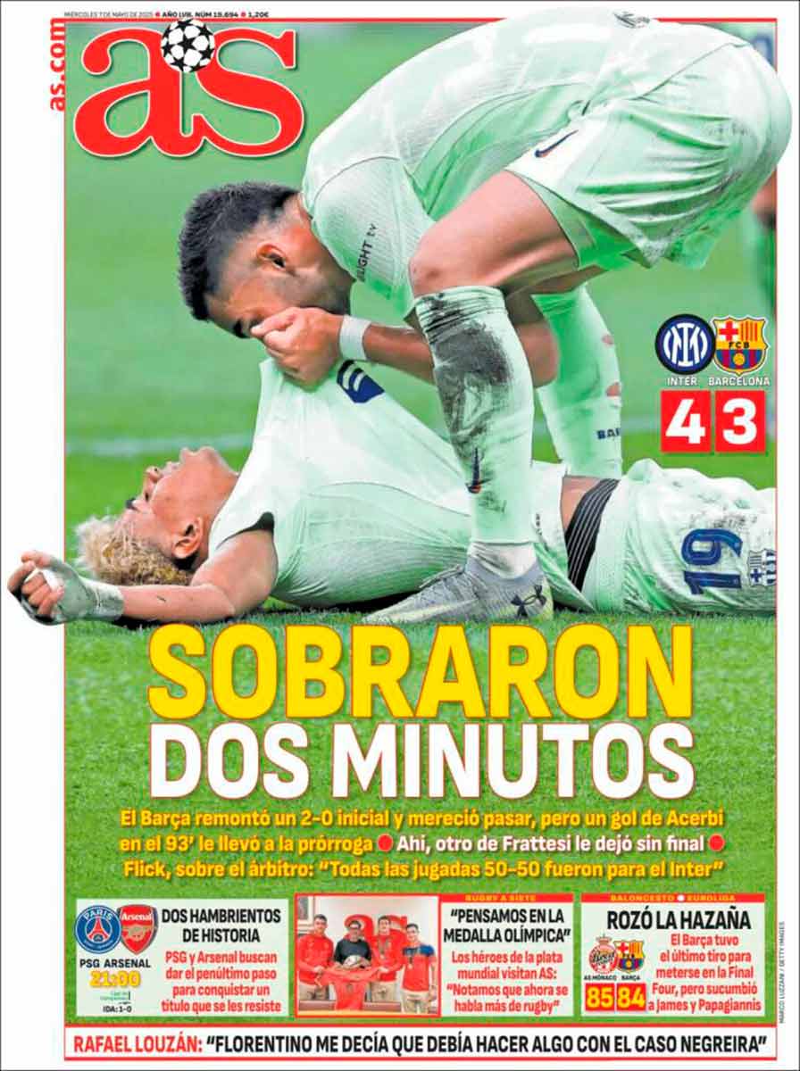 Pues no se ponen de acuerdo, Marca dice que sobró un minuto y As que dos. ¿Alguna crítica al hecho de encajar tantos goles o al comportamiento de Iñigo o a las quejas sobre el árbitro? Ja, ja, ja.