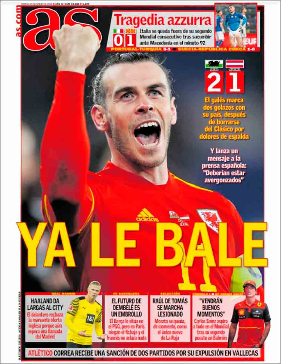 La prensa deportiva es como la política. Unos atacan a Bale porque juega al golfy en vez de irse de putas y la otra ataca inventándose partidos de ultraderecha y perdonando la corrupción de los suyos y de sus hermanos los sindicatos de los "comegambas".