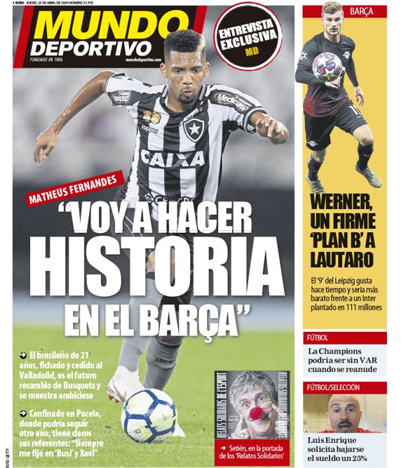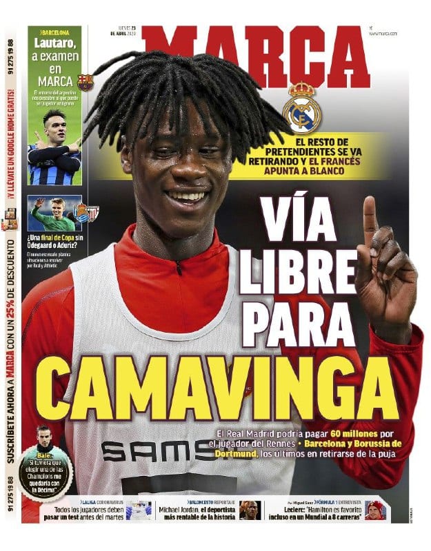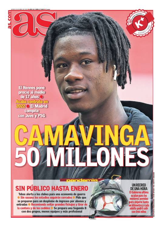 Buenos días. Empezamos por mostrar las huellas del crimen. Sobre estas líneas tenéis tres de las cuatro portadas de la prensa deportiva del día. Que si Camavinga, como si el Real Madrid pensara en fichajes en medio de la hecatombe del Covid. Que sí Lautaro, como si de verdad un club en quiebra como el Barça pudiera plantearse fichar a nadie ahora. Cualquier cosa viene a las primeras planas de los cuatro jinetes del Apocalipsis menos la única noticia que no es apocalíptica en estas fechas negrísimas que vivimos.