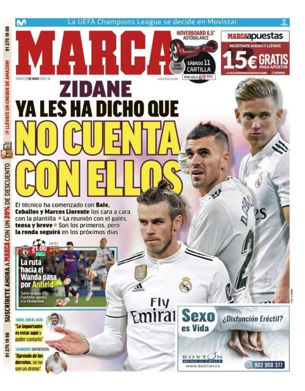 No son viejunos, pero desde luego sí buenos y heterogéneos los tres jugadores que, como DVDs de saldo, trata Marca de colocar en el mercado, presuntamente porque quien en última instancia quiere desprenderse de ellos es el propio Zidane.