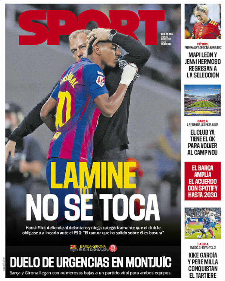 Las principales hojas parroquiales del Generalísimo, Marca y Sport, en un acto de patriotismo con precedentes, aunaron sus fuerzas con las de Su Excelencia y evitaron referencia alguna al incidente en su portada. ¡Patriotas y gallardos!