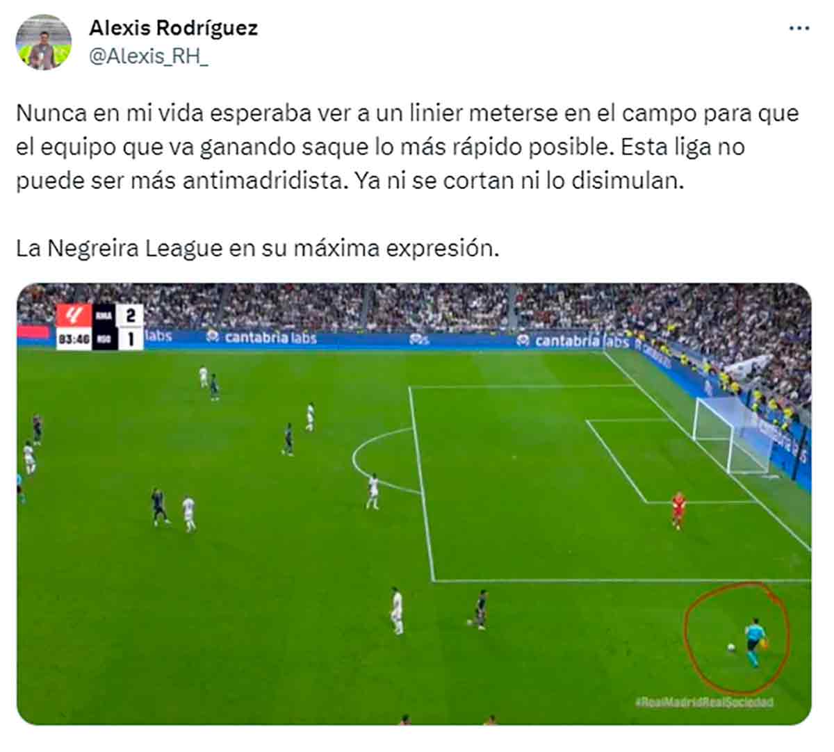 El Comité Técnico de Árbitros acaba de meter en la nevera para tres meses al susodicho linier por su desafortunada intervención cuando tenía todo el campo libre para el y no profundizar hacia la portería defendida por el portero madridista y marcar GOOOOOL,