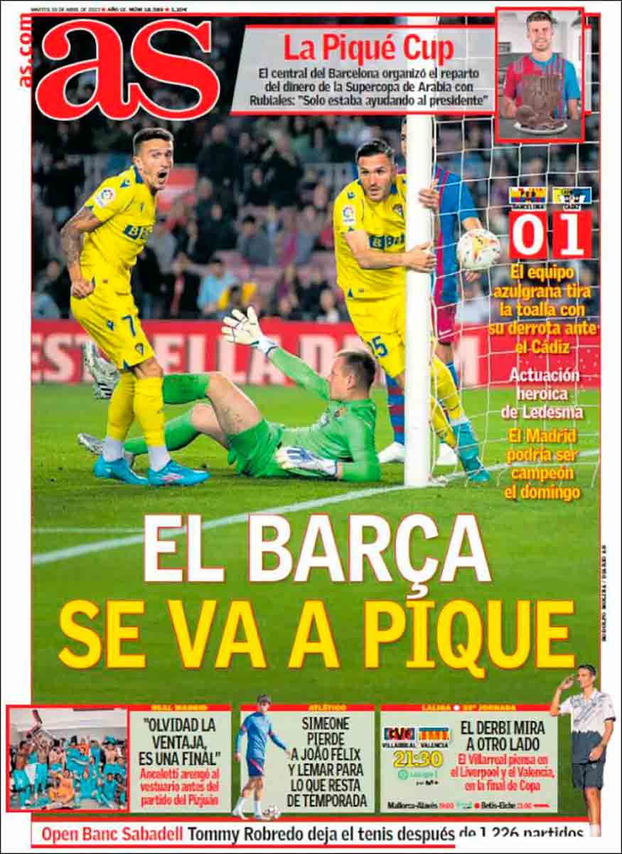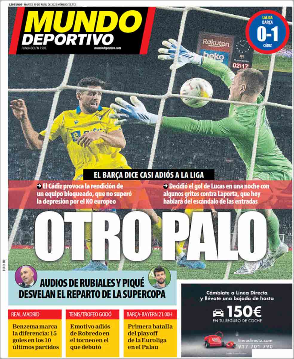 Piqué dijo en los audios que si apretaba a Arabia, tal vez consiguiesen otro palo o dos más (palo = millón de euros). Mundo Deportivo titula “Otro palo” en referencia a la derrota del Barça en casa frente al Cádiz. El mundo (deportivo) a veces puede ser maravilloso.